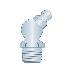 Heritage™ Zerk Grease Fitting, 45 deg, 1/8-27 PTF Thread, 1.07 in Overall Length, 0.28 in Shank Length, 7/16 in Hex, Clear Trivalent Zinc Plated, Steel