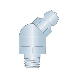 Heritage™ Zerk Grease Fitting, 45 deg, 1/4-28 SAE-LT Thread, 0.82 in Overall Length, 0.2 in Shank Length, 3/8 in Hex, Clear Trivalent Zinc Plated, Steel