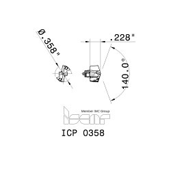 Iscar Drill Head, Flat Bottom, 0.358 in Diameter Maximum Drill, Series: ICP0358, Sumocham, 0.05393 in Head Length, 0.228 in Overall Length